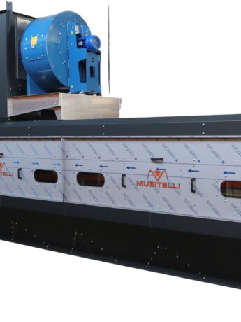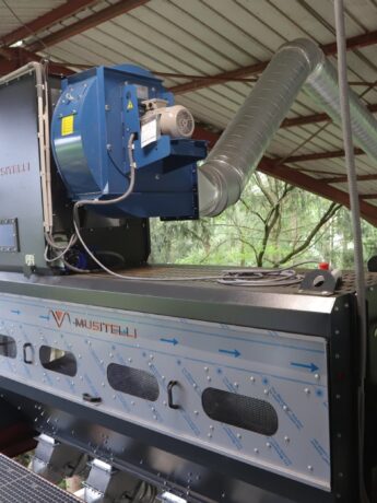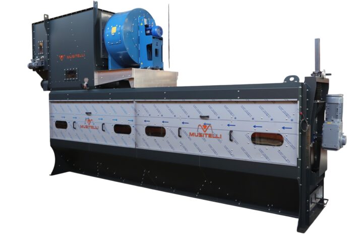 MUSITELLI graudu šķirotāja dizains nodrošina vienmērīgu graudu masas plūsmu plānā kārtā visā sietu platumā, tādējādi visi vieglie piemaisījumi tiek atdalīti ar gaisa plūsmu: smagākie piemaisījumi ar gaisa plūsmu tiek atdalīti no putekļiem un tiek izvadīti no iekārtas ar gliemežtransportieri.